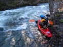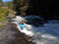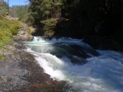 Upon putting on you are greeted with continuous class II rapids which occasionally spice up to class III. After a mile you get to the first of the ledges and the fun really begins. After the waterfall section you get to some mankier but still surprisingly fun rapids. There is a wood portage or two (2010) in the mile or two below the ledges. After 7 miles Tom Neal Creek enters on the right nearly doubling the flows. The next straightaway has several great fun rapids, the second of which is the hardest on the creek. The first one will sneak up on you but is only class III. The big one is a triple drop with two serious holes to get through. From here there are several more sections with class III-IV rapids though the gradient seems to diminish. Once you get to the confluence, if you have 1,600 cfs you will be done in 1.5-2 hours without scouting. You still get all the biggest and best rapids of the Lower-Lower McCloud; Double Drop, Tuna Creek, the Reagan Years etc. We put on at ~9 AM, got to the confluence at 1 pm, took lunch and got to take out at 3 pm. With less water or with scouting I could see adding 2 more hours to the run. Although we had someone that had done the creek before, we still took a lot of time to get down it not out of fear, but because we were going out of our way to take pictures. Anyways, this is a great long day run. It is too bad there isn't more camping as just a few mile below put-in you boat through a fishing resort's property thus limiting the camping spots to overnight on. As it was, there are some early in the day that I believe are ok to camp at.