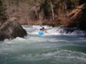 Canyon Bridge (IV- to IV). At the end of a straight away the river drops into a good size hole and then leads to a rocky ledge. You can boof the right of the large rock in the middle or just go all the way right around it.
