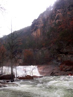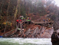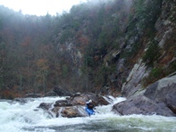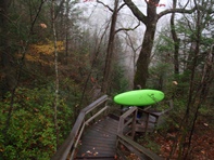 Put-in: Head back to Tallulah Falls, just before you cross over the lake/river/dam there is a parking area on your left. Park here, though it costs $5 and there will be AW folks there to collect. Make sure you don't j-way cross the higway to the trail, use the stairs that drop under the bridge. From there, follow the trail to the top of the steps. It is 590 some-off steps down to the gorge floor. Make sure to stop and take in some of the views of the massive waterfalls between the dam and the put-in.