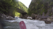 - Bridge Rapid (IV). Underneath the first of the main road's bridges that you pass under, is a rapid that you want to be far left on. There are two holes to punch. But it is cleaner than the center and far right.