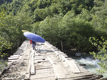 Putting on the water, we were greeted by fluffy class IV-ish water that was continuous in nature. The crux of the upper half is just after the first bridge. Eventually, the mountains open up into a valley and some mellow white water takes you down to the start of the gorge in the lower portion of the run. The gorge is indicated by crossing under a second bridge. Here, the walls tighten and you enter a walled out gorge with one significant drop that probably should be scouted your first time as if you follow the flow you would find a rock buried in the drop. Scout left. Below, you enter a beautiful canyon with a few small rapids before the canyon again opens up, this time to the farming plains. Now you float to wherever you arranged take-out.