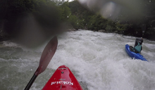 - Ledge (IV). This rapid should be scouted on the left. It is a ledge with a big explosion in the middle where the water appears to hit a rock. You want to be on the left and boof into the eddy below. We entered center and then headed left for the boof. It looks worse than it is, but it is still worth scouting. Below, you enter a shear walled section with a few sticky holes that you want to zig zag around.