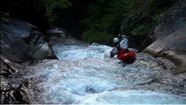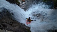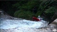 Third Falls (IV+). It looks big, it looks intimidating, but in reality it is a zero move waterslide. Just enter and hold on. If it decides it wants to corkscrew you, there is nothing you can do by try to throw a kickflip. We all were treated fairly by it and landed upright. Use the rope that you set before starting down the river to climb up and out of the gorge just below before the next falls.