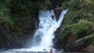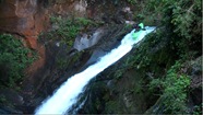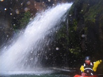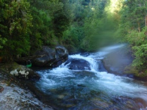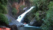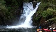 Put-in: Go up the trail. Once at the top of the Third Falls, set a rope to climb out. You can also scout it and the landing of the falls above. Then continue up the trail to the top of the zip-line. Cross through the barbwire fence. On the other side, keep going upriver and you will quickly see a trail leading down to the water again.