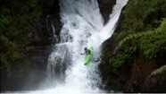 Second Falls (V- to V). Such a sweet drop, unlike some of the waterfalls in Pucon that start in pools and end in pools, this one makes you work for it. First, very in front of the wall, careful to not slip into the hole just off your bow. Then drive right to boof the first 4-5 footer. Then line up the final falls. The first 15 feet are a steep slide followed by 10-15 feet of vertical falls. Land with a little left angle and beware that it wants to boof you out a bit. All but Diane had sore backs the following day thanks to this drop.