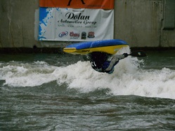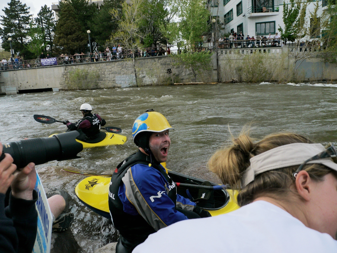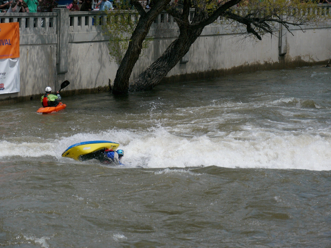 I just noticed that I didn't have a write-up for the Reno Whitewater Park even though I first went there in 2004. Weird. Probably because my first experience there was less than fun. After a long night with friends, I went to the park to occupy myself on a single valentine's day. After an hour or so, the hangover began to creep up on me when I decided I should get into the eddy because of oncoming nausea. Sure enough, seconds later, with an audience of 20 people watching me boat, I lean over my boat and throw up. This was immediately followed by me losing my balance while still in my boat and flipping directly into the area I just threw up into. Needless to say, that was the end of my day. Ah to be young again...