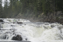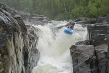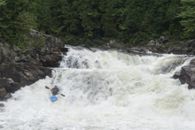The main reason most do this run is for the perfect 25 foot falls. It doesn't really come much easier or friendlier for a drop of this height. Some choose to take-out nor far downstream, above the triple falls. Others, us included, portage the triple falls and continue into the boulder garden gorge below. The hardest part of this run is the last mile of whitewater for sure. Steep, congested rapids hit you one after the other down to lake level. So plan on taking some time in here for sure.