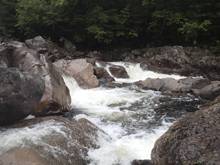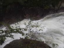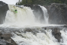 - Portage (V+). Not far below those rapids, at the end of a brief section of flat water you will notice the river tightening back up. You will also notice a metal structure on the left. Get out here. There is a trail up and around a triple drop of falls. Stay on the main trail, don't get tricked into following tagging. If you do it will be bushwacking. If you miss the portage location. Falls 0 is runnable and is a slide that you want to be far left on if you bumble into it. You want to be left as there is an eddy at the lip of the first falls on the left. Get out and bushwack your portage on the left. The first falls looks ok but goes directly into the second falls and then that into the third. The third has a huge reconnect near the bottom. In total they drop around 90 feet. Two descents that I know of have been made. The first ended in a concussion and the second moments later by his friend resulted in broken ribs. If you ask me... they got a little lucky! Put back in 200 yards downstream of the falls. Also, apparently some people take-out here to avoid the gorge downstream.