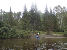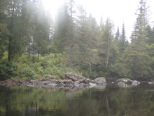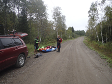Put-in: Go back out to QC-172, turn right and cross the Valin. After just 1.3 km turn left onto Rang Saint Joseph. Follow this for 6.8 km, gaining basically ALL of the elevation in the first 1.5 km. At the T, turn left onto Rang Sainte Anne and follow for 3.4 km. If you get to the nice turn out you went a little too far. We went down an area that looked like it had once been a road, but was now waste high grass. There are houses going up all over here, so the access may be a bigger issue in the future.