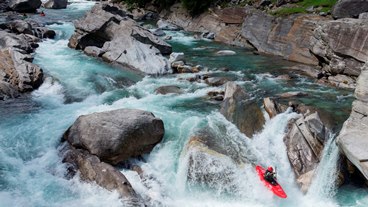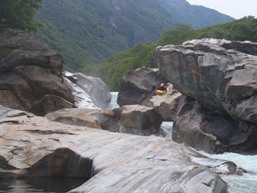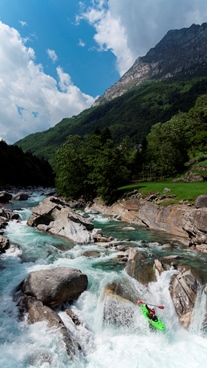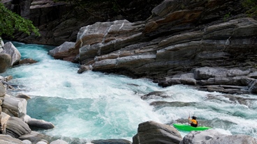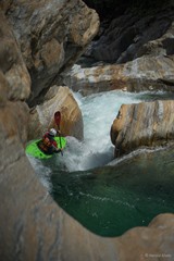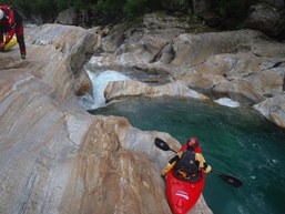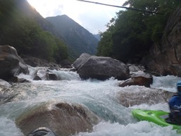 Some of the A-gamers will take a look at the waterfall at put in. this consequential falls gets run with regularity but walked far more often. If run, set safety on the caves. Below is the famous "Snail" rapid that has been seen in countless photos. Further downstream you get to a popular sun bathing spot where you run a 20 foot tall rapid with boofs and slides to negotiate. Further downstream as the river gets between a set of tight walls, some big boulder gardens appear before another quick potential portage. Downstream, more rapids await full of boofs, multi move boulder gardens, and slides to take you all the way to take-out. I literally cannot describe how nice this run is. Our first time down, with scouting and video it took over 4 hours. Each of the subsequent laps were under 25 minutes but left smiles on our faces for the remainder of the evening. If you are going to Italy or Switzerland... this one has to be on your list, it was one of the three rivers that inspired me to plan my whole trip in the first place, and man it did not disappoint.