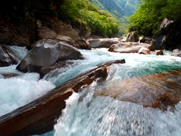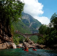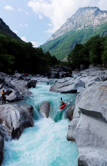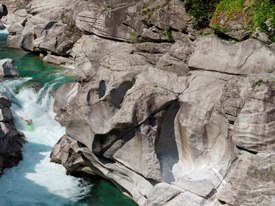 Put-in: As you drive up the valley, you will pass the town of Lavertezzo which is river side right in the meat of the lower section of the river. Continue just a short ways upstream to the large gravel parking lot. This is put-in. Head out the top of the parking area to run Lucifer's or find the trail just out the bottom of the lot to put in below the waterfall. Make sure you pay to park...