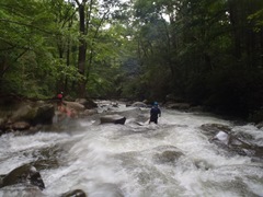 - West Prong Falls (IV+). Sometimes there is a cool boof on the far right, but at this time there was wood. So we went down the middle over the ledge. Error a little right as the left side of center landed in a piton.