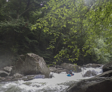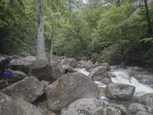 Put-in: Continue for 2.4 miles to the Chimney Tops Trail Trailhead. Parking is on the right in the cemented lot. It can be crowded.