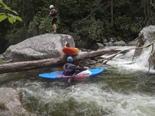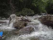 Last summer when we moved out to Knoxville, I was blessed with ignorance. Although thanks to friends highly recommending the West Prong, I did not know it by detail or by reputation. It wasn't until after I did the Lower the second weekend I lived here that my friend Laura Farrell told me that it has a reputation of being every bit as hard as Ravens, Toxaway, and Linville. Now I still have two of those three on my list... but that was a surprise to me. If I had known it was held with such regard as those others I would have been more nervous! This year, thanks to another summer thunderstorm, I once again got the chance to boat the West Prong. This time however, the water did not hold high enough to allow for a full top to bottom run, as the lower was too low by the time the after work warriors made the drive past Gatlinburg. Instead we found low flow, and that meant the Upper would be the only option. This was fine by me as I had yet to do the Upper. However, this time I also did not have the ignorance to avoid the nervousness I was lucky to avoid last summer.
