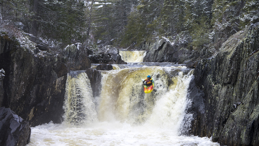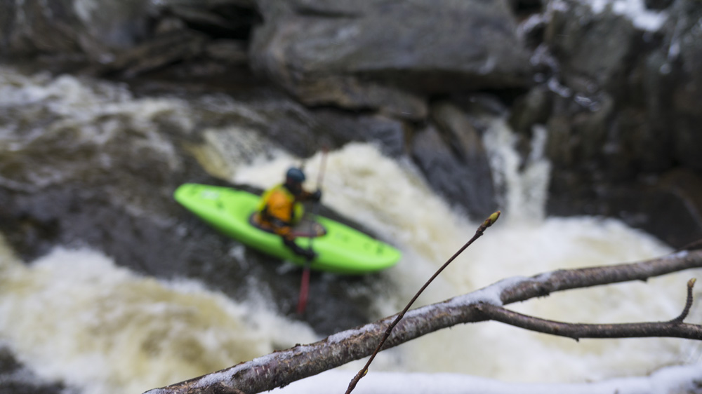 I first heard of this canyon five years ago when we road tripped to the North East. A friend of mine who lived in New York for a few years highly recommended this canyon. That trip did not take us far into Maine, so while it was added to "the list" I did not know when or if I would ever get to experience it. Thankfully, on day three of our 2021 trip, we got some rain on the freshly fallen snow which gave the region the much needed shot of water in the rivers, and brought the Gulf Hagas up from -3" up to +4" the morning of our run. Super! For reference, most people consider low to be 0" with it having been run by a few down to -7". I think that must have been absurd bone zone. I was told -3" wasn't worth it even if it was the only opportunity I may ever get to see the place. +4" was a nice medium(ish) flow, perhaps a tad on the low side. It has been run as high as +19" but that is a locals connoisseur level that I would think is terrifying, even if you know exactly where to go and what to expect.