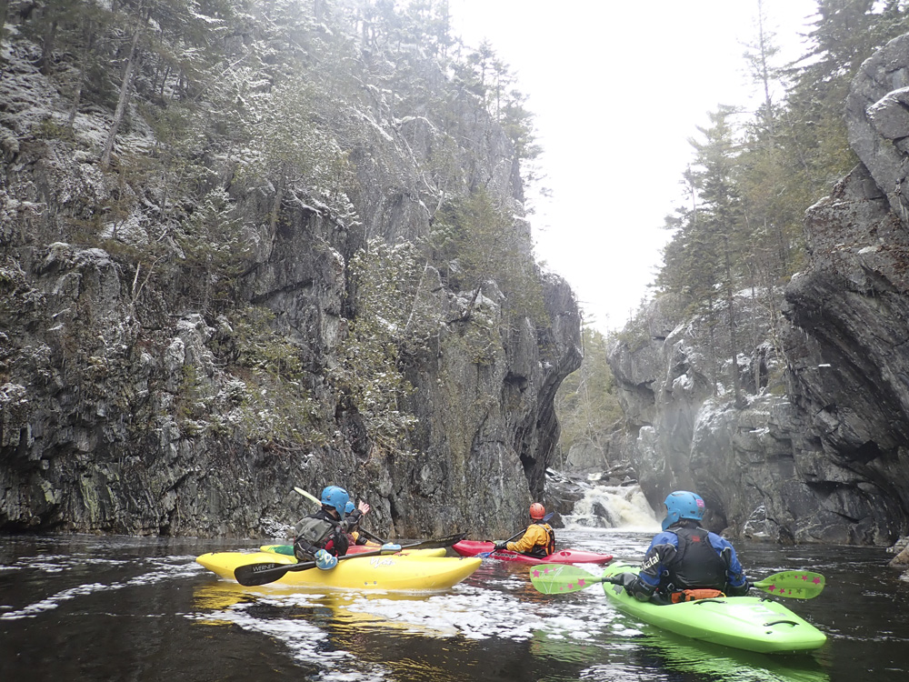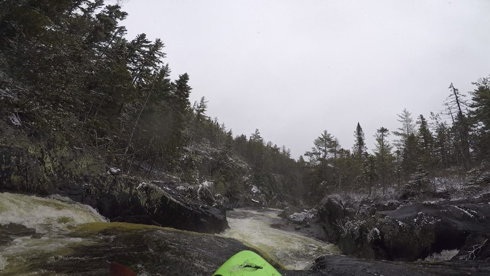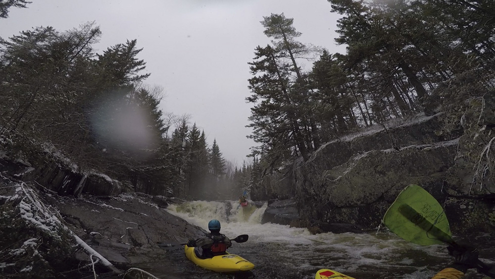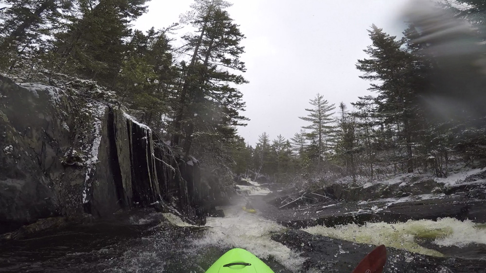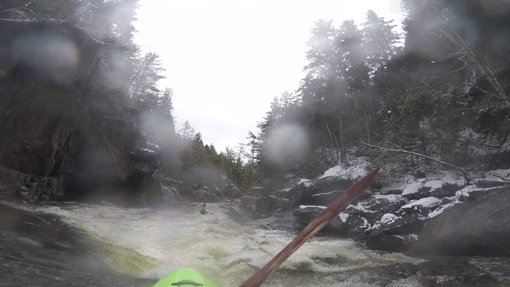 Oh, and thanks to Chris Howe. I posted on the Maine Flows facebook group at the beginning of the trip just inquiring generally about what was running etc and he sent me a private note that led to the Gulf Hagas plans. It was great to have someone familiar with the run as Turnstile and Jaws are not full scoutable, so having the first hand beta was really nice. Also, with the windy snowy weather, I think Diane and I would have been too intimidated to put on our day by ourselves. As it was, our gear would freeze while scouting, the shore was snow and ice covered which made the scouts and the portage of Wedge scary so it was nice to know generally where to go on those too. Anyways, thanks so much, we appreciate it!