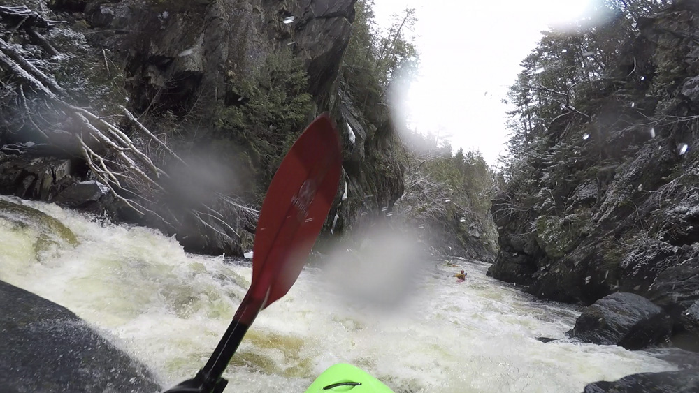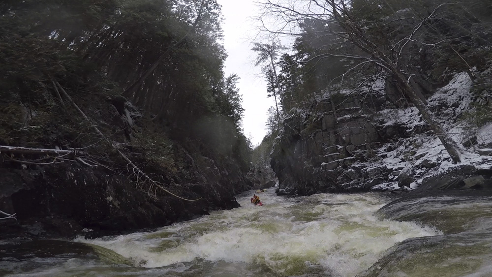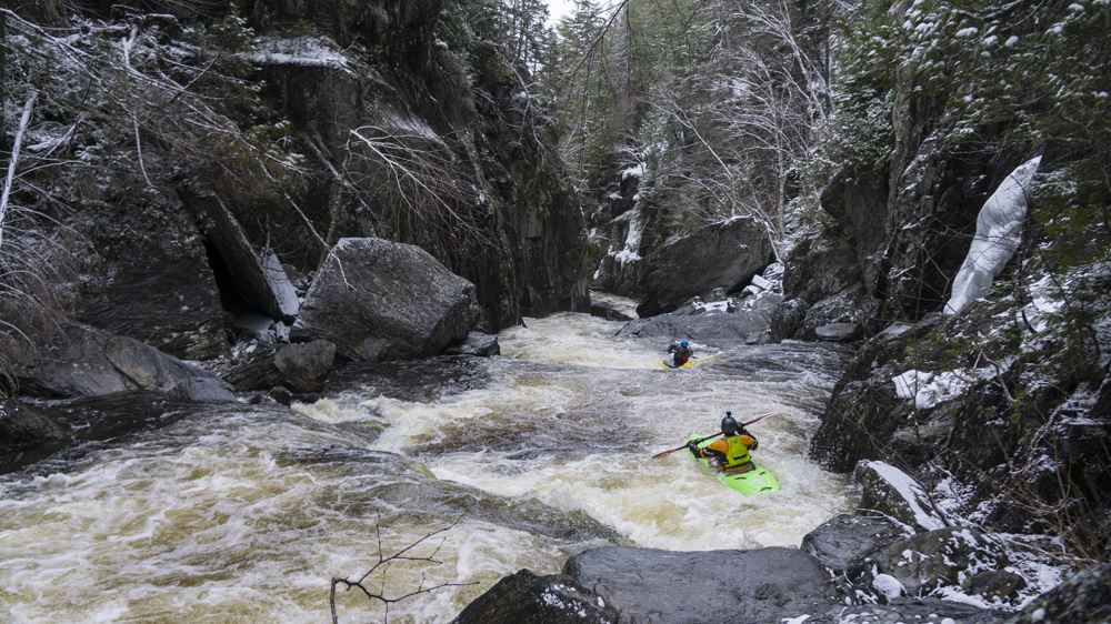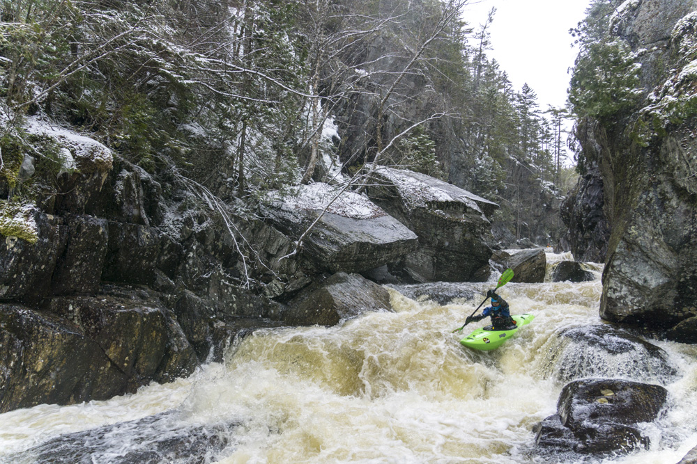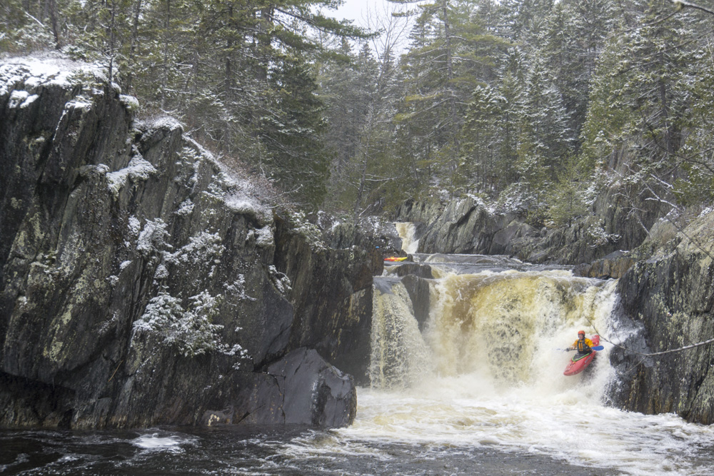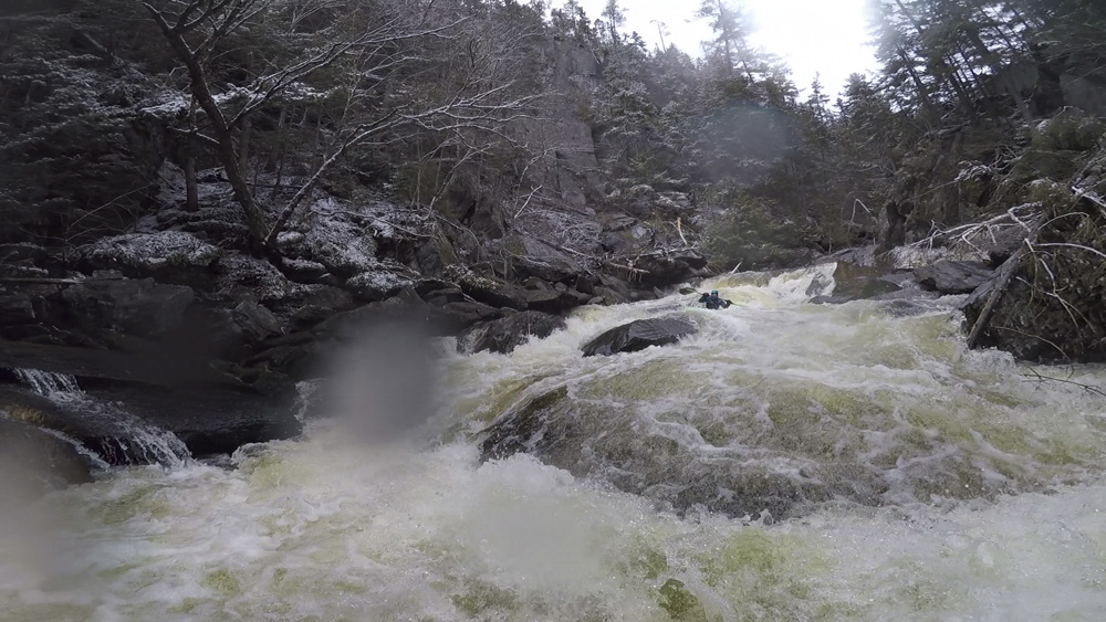 Oh, and thanks to Chris Howe. I posted on the Maine Flows facebook group at the beginning of the trip just inquiring generally about what was running etc and he sent me a private note that led to the Gulf Hagas plans. It was great to have someone familiar with the run as Turnstile and Jaws are not full scoutable, so having the first hand beta was really nice. Also, with the windy snowy weather, I think Diane and I would have been too intimidated to put on our day by ourselves. As it was, our gear would freeze while scouting, the shore was snow and ice covered which made the scouts and the portage of Wedge scary so it was nice to know generally where to go on those too. Anyways, thanks so much, we appreciate it!
