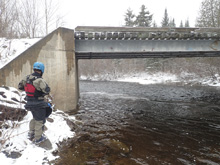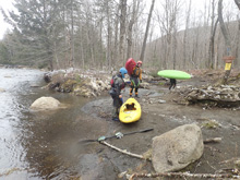 Put-in: Continue on Katahdin Iron Works Rd for 5.4 miles. This dirt road can be muddy and rutted during the spring, or even snow covered. So bring something better than a minivan for the shuttle. Park at the gate at the junction of Frenchtown Rd and walk 0.4 miles down Katahdin (past the gate) to access the put-in.