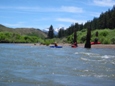 I don't really have all that much to say about this run. It really was one long rapid. We actually put-in just below Chris' Flat Campground at turnout just above the good section of the river. The first 2 miles are 34 feet per mile, then 2.5 miles are 144 fpm, followed by another 2.5 miles of 125 fpm until the river then lets up and is a mere 94 fpm. The first 2.5 miles of the goods are where all the difficult sections are, one or two would be worth taking a look at from the road before hand. There very few eddies, if there is an eddy you can bet that more than one boat will not fit. In all, the run was fun, but once done with the first 5 miles, the rest was kind of a grind. The bottom 4 miles were nothing more than splashy waves causing you to always paddle forward and squint your eyes. The top 5 were more like one long Meat Grinder rapid from the South Fork of the American. As I said though, there are no eddies, and at 1,000 cfs there were two sections that seemed more solid IV and could easily bump up to IV+ with 2,000 cfs. Swimming on this run would not be recommended. Thus, although class IV- boaters would love the skill it requires, I am not sure they would love the stress of non-stop action.