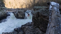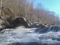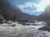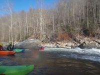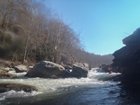 None of the Knoxville folks I reached out to could make the drive the day after Thanksgiving, so I reached out to some other folks looking for a group to join and found a group in town from New York. Arriving at put in we were surprised to find out the groups other plus 1 was actually a plus 15 and had a large group of their own. For whatever reason we did not break off on our own, so instead we headed down river at a slow pace in frigid 25 degree weather. Most of the run was boat scoutable, although we had some folks who had done the run before, they were busy helping some other first timers down. I decided to avoid the crowd by staying in front, only a few times deferring for beta rather than probing something I could not see the bottom of. The style of rapids although most boat scoutable did sometimes get congested and steep. A few scouts would be needed for all but the boldest boat scouters.