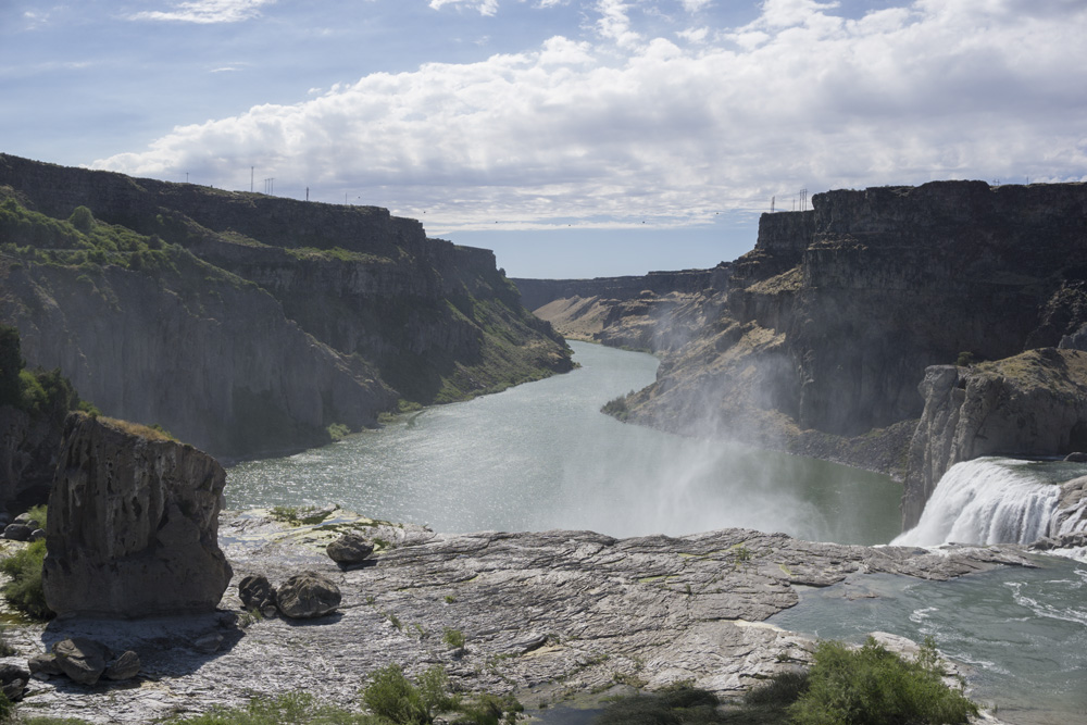 That afternoon, we returned to Paul's place and packed up our stuff. We then set off towards Twin Falls, Idaho which is on the Snake River near the Murtaugh Canyon section. I had a feeling it we wouldn't have time the following day to be tourists, so while Paul and Amanda found a camping spot, Diane and I went down river to the Shoshone Falls to sightsee for a few minutes before heading back to join them at camp. One final note, it is pronounced Weeber.