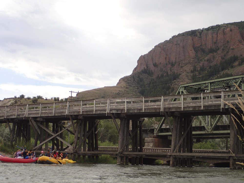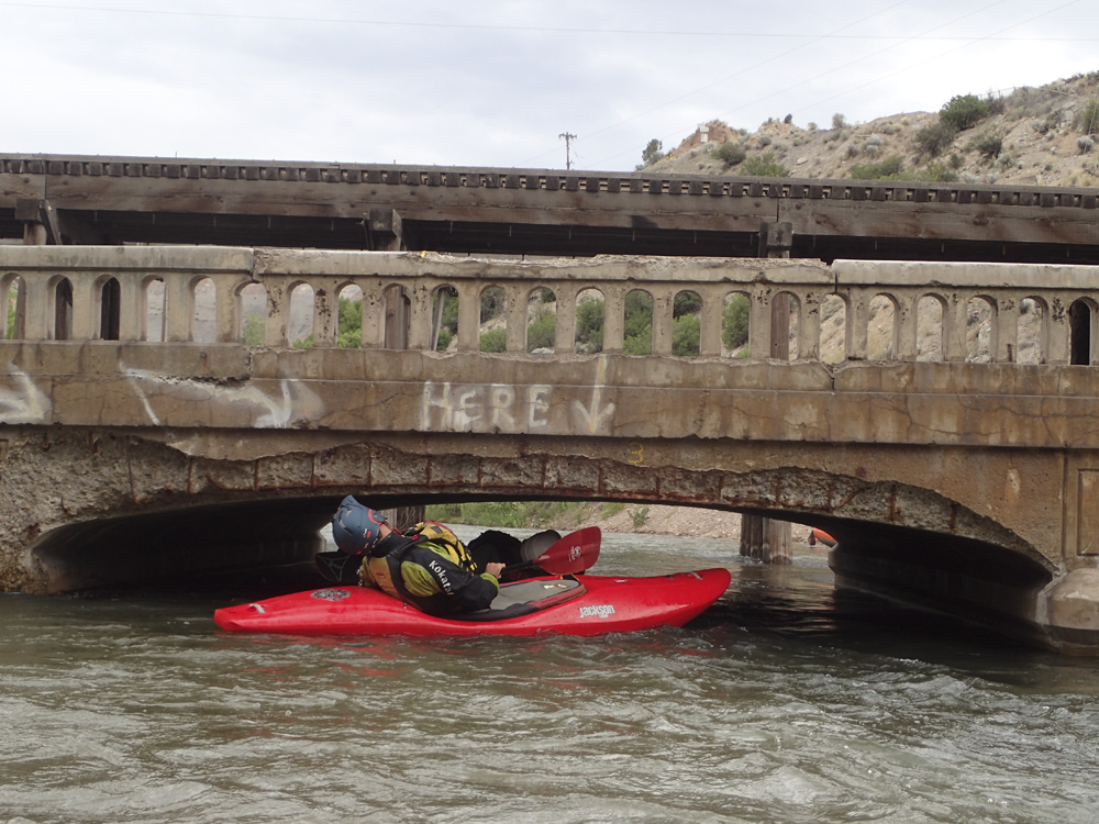 - Low Bridge (II to U). Go under the bridge on the far right, it is a tight fit at even the lowish 500 cfs flow. At high flows I imagine you have to portage, so stay on your toes. Portage is on the right I believe.