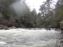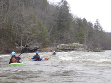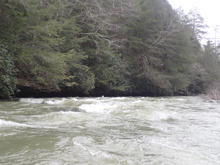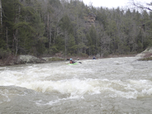 - Class III- (II++ to III-). The biggest rapid of the run is obvious from above and drops a few feet. There was a straight forward line down the left moving back right, or there was a line through a small hole on the right. It was also a good ender spot. There were several fun attainments in this rapid too.