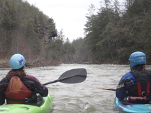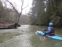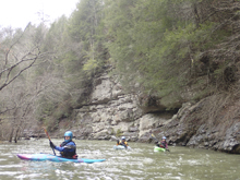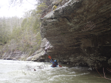 The trip ended up being really nice. The group consisted of Diane, her mom, and I, as well as our friend Laura Eddlemon. The run starts with a little flat water before getting into the Class II which is consistent among the nice plateau walls that line the river. There are many caves formed by deep undercuts, which are a blast to paddle back under. After 5 miles you get to the hardest section, as the creek makes a final push to the confluence with Clear Fork. Two standout rapids will keep you on your toes in this section. Then you will hit the confluence with Clear Fork. From there many more class II rapids come at you, several with epic play spots, until finally the canyon walls pull back and you are greeted with a few flat straight-aways before you reach the take-out. The end certainly begins to drag on a little, but I think I also found that because 1) my ass was asleep and needed to be stretched 2) I blew my knee the previous week and it hurt in the boat and 3) I had to pee super bad so the end couldn't come quick enough!