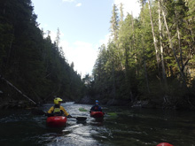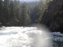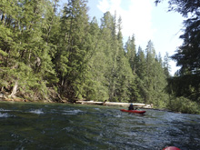 Canyon (III+ to IV-). Two nice rapids in a canyon setting. The first we ran down the left and boofed over a small hole. This then calms out for 100 yards where the river goes to the right around a bedrock outcropping. We ran down with the flow from here down for 200 yards of fun moves.