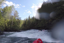 - Landslide (III). A fun but unchannalized drop where the right bank is scoured, we ran right of center.
