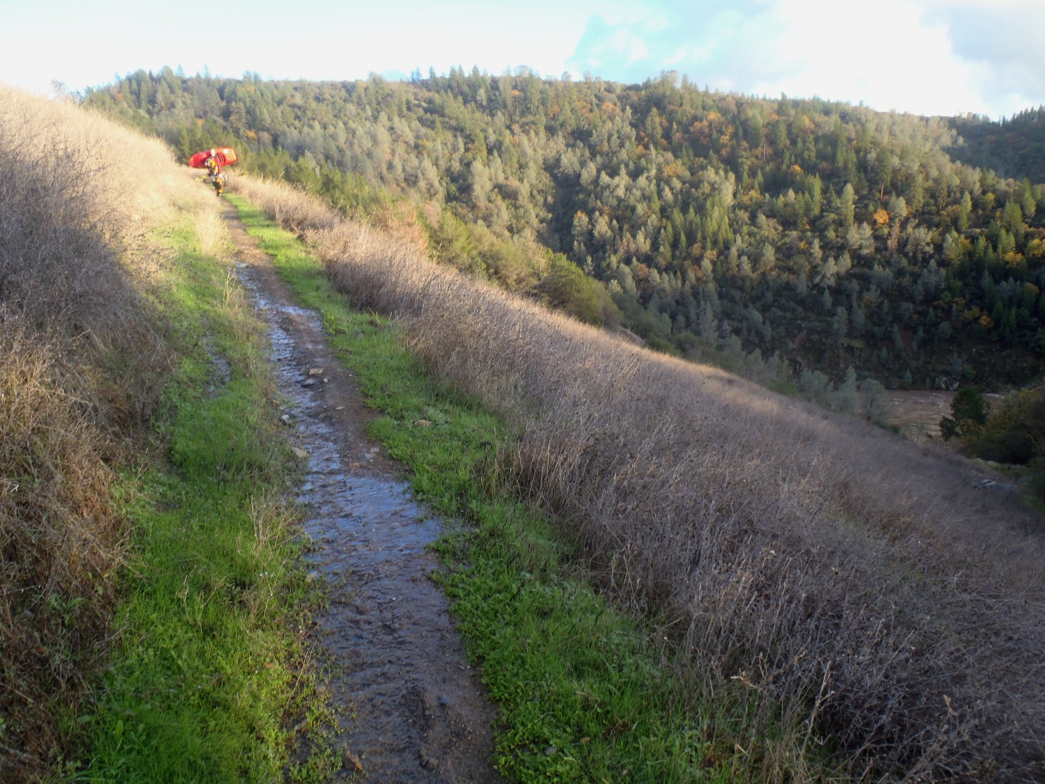 Take-out: Either find your way to Rattlesnake Bar stake park area on the north side of lake Folsom or go to the China Bar State Park Area. To get to China Bar (the only one I have used) from highway 80 coming from Sacramento, take the Newcastle Rd exit and turn right onto Indian Hill Road. Follow for 2.4 miles, briefly turn left on Auburn Folsom Rd for 0.4 miles before turning right on Maidu Dr. Continue for 1.0 miles and park at the parking area. The hike out is 2.1 miles long and not over steep... but you do gain some 800 feet of elevation. After a few hundred yards, take the third "Cardiac Bypass" trail to take a short cut that isn't too hard. Continue up the road from there.