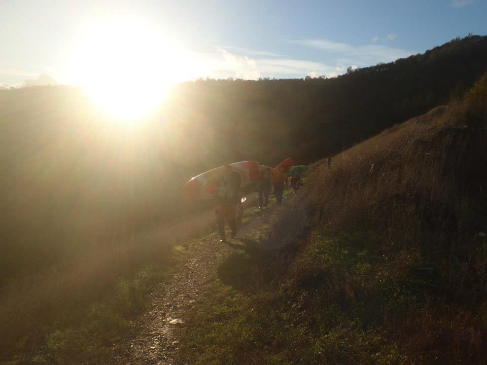 For taking out, there are 4 options. Either take out at the dam site, and hike straight up the paved road to the parking; go 200 yards further and take out on the less steep road for a 2.0 mile hike less steep (but still plenty of elevation gain); continue another 1.5 miles and take out for another 2.1 mile hike that ends at the same parking (state park fee area) as the previous take-out option; or continue down and across the lake (when the lake is full) for 3.5 miles of flat water to Rattlesnake Bar (state park, fee area). We hiked from the third option... the hike wasn't that bad. Gradually uphill... with playboats it wasn't bad... though some of our group thought it was less enjoyable. So, do you prefer to hike or paddle flat water? Interestingly, a group that was 5 minutes ahead of us got to put-in at the same time as us... meaning the two options must be just about the same duration of time.