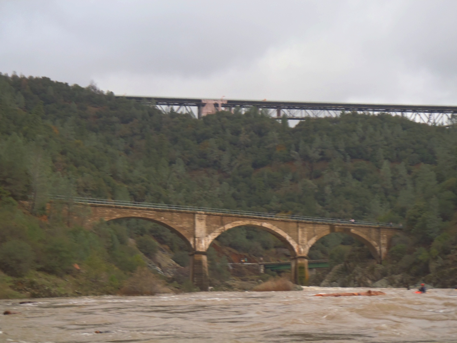 At lower flows, the old site of the Auburn Dam has been turned into a playpark for kayakers with several features. There is a road that drops steeply down to the park making it a potential park and huck... if you are willing to hike out of the canyon. At the high flows, huge waves form ending in a massive hole, requiring all but the most bold to skirt safely around. I have never been the play park at regular flows, but I have heard it can be fun.