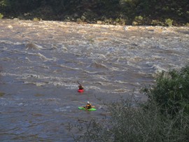 OK, the last thing... even at the high flows the river is only class III-. But be aware, big water like thiscan be challenging, surging eddies, unpredictable currents, and debris (huge trees) make for a class IV day... a swim here is not a great option at high flows.
