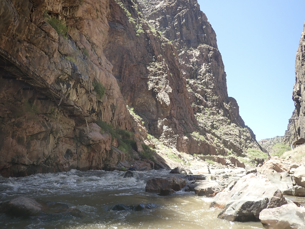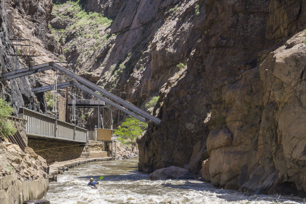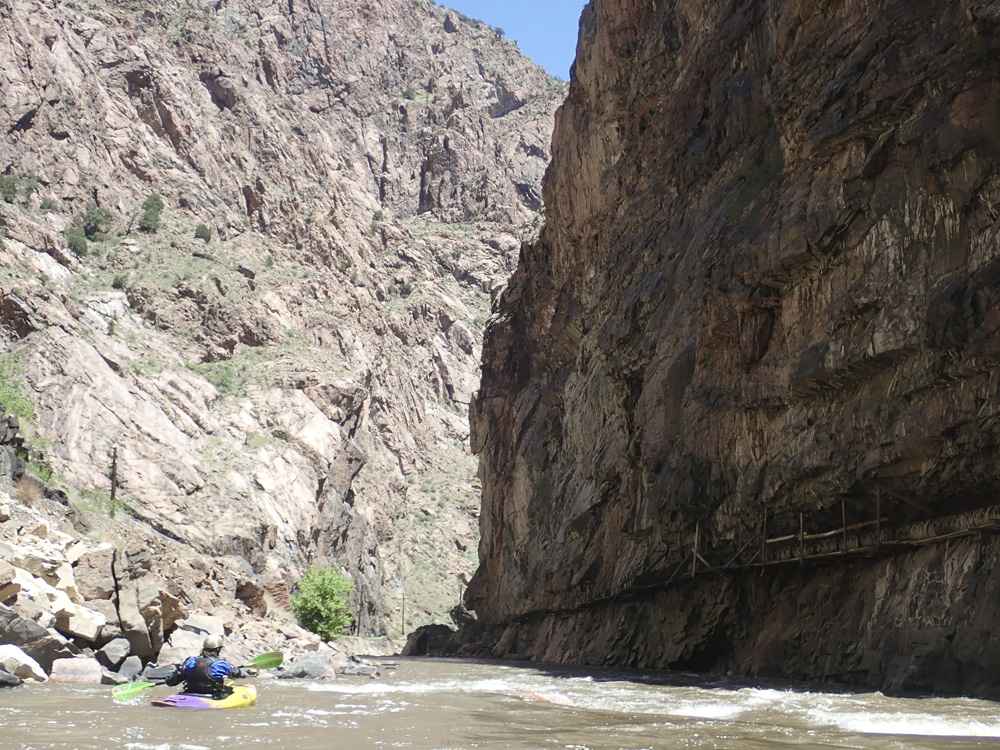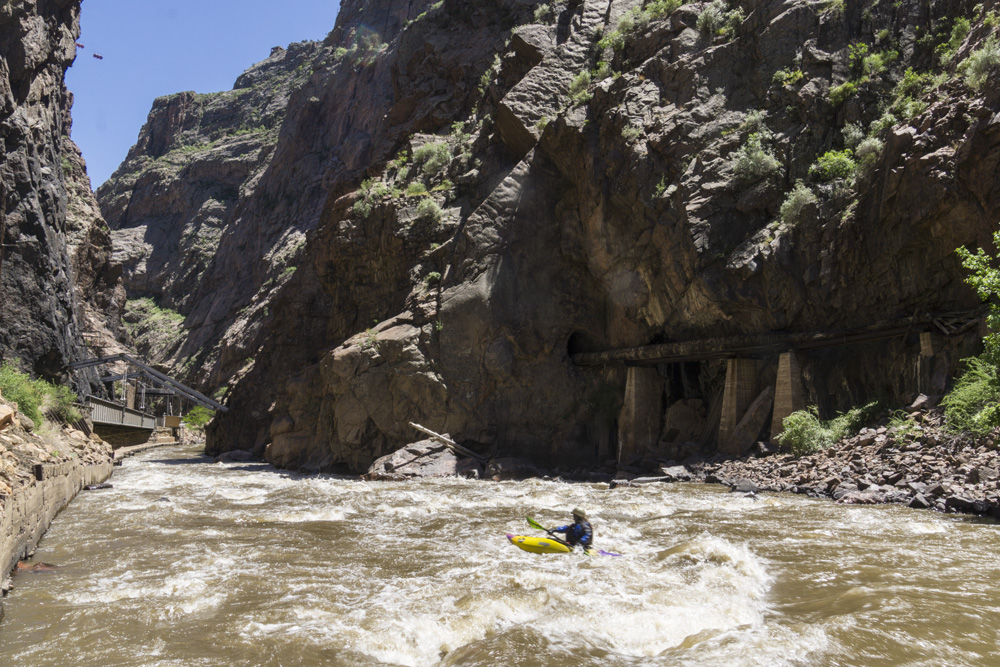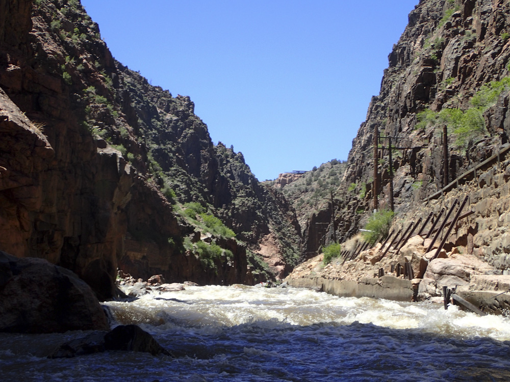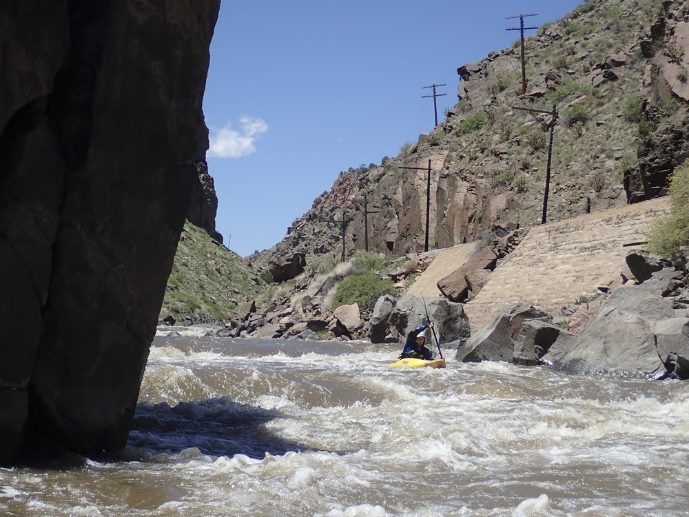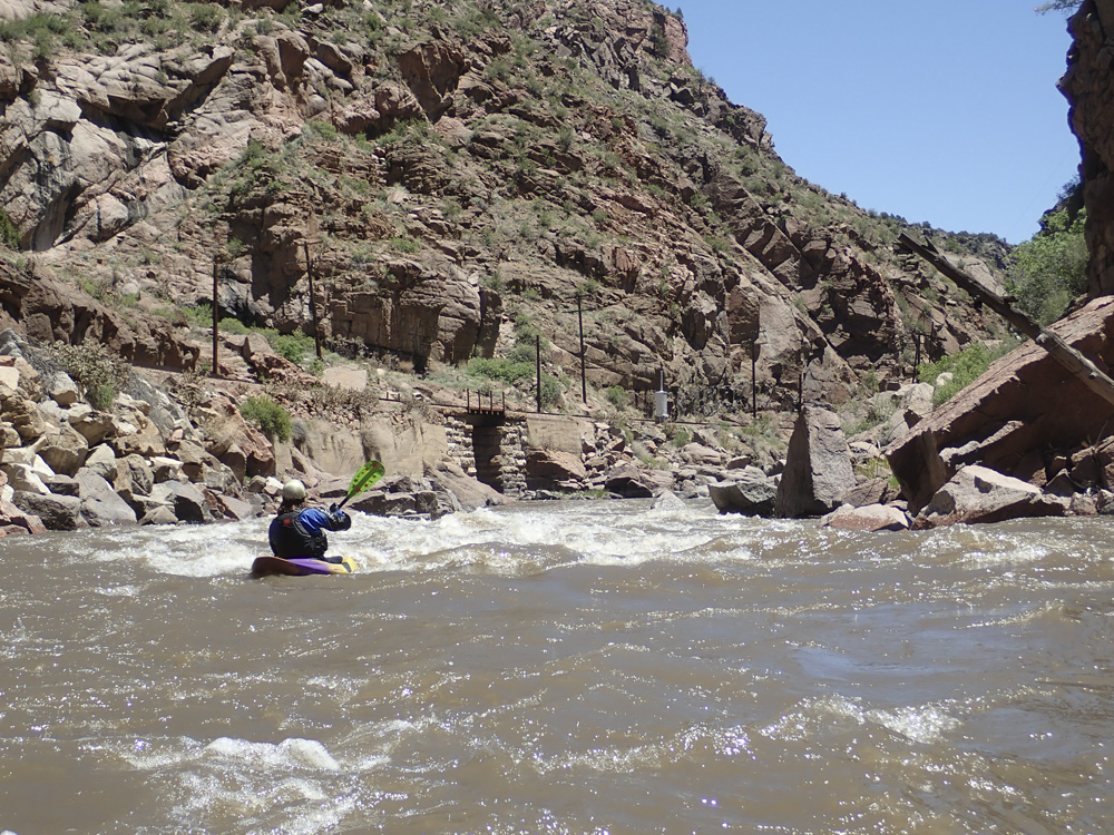 - Fishbowl (III to IV). At the viewing platform for the now defunct vernacular, is a nice rapid that starts as read and run boulder garden but ends in a ledge that packs a punch. We ran far right. It is a tight canyon here, so scouting can't be done legally (I assume it is illegal to use the train tracks, it would certainly be dangerous).