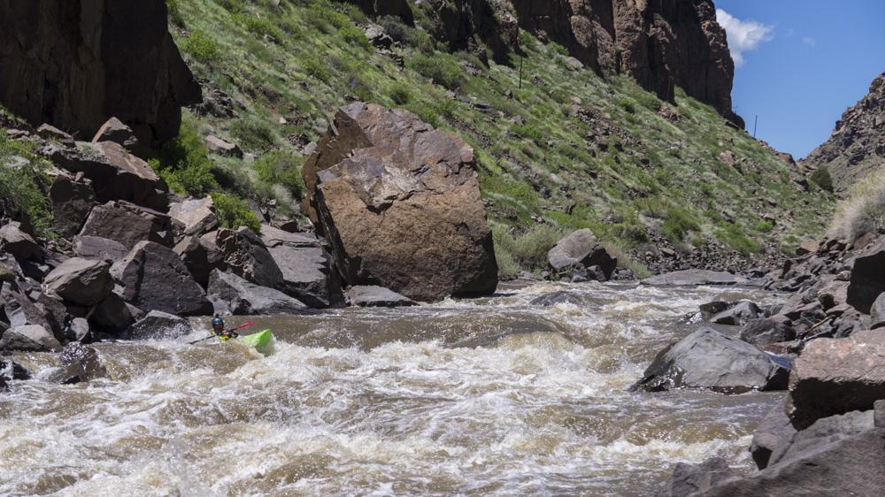 From put in, the rapids gradually pick up. The biggest rapid comes around mile 2.5, before the walls rise to an intimidating level. Below, the action sustains as the walls rise and lock you into the canyon. Once the walls are tight you will have a few more substantial rapids before the river bends right and opens up, freeing you from its grip.