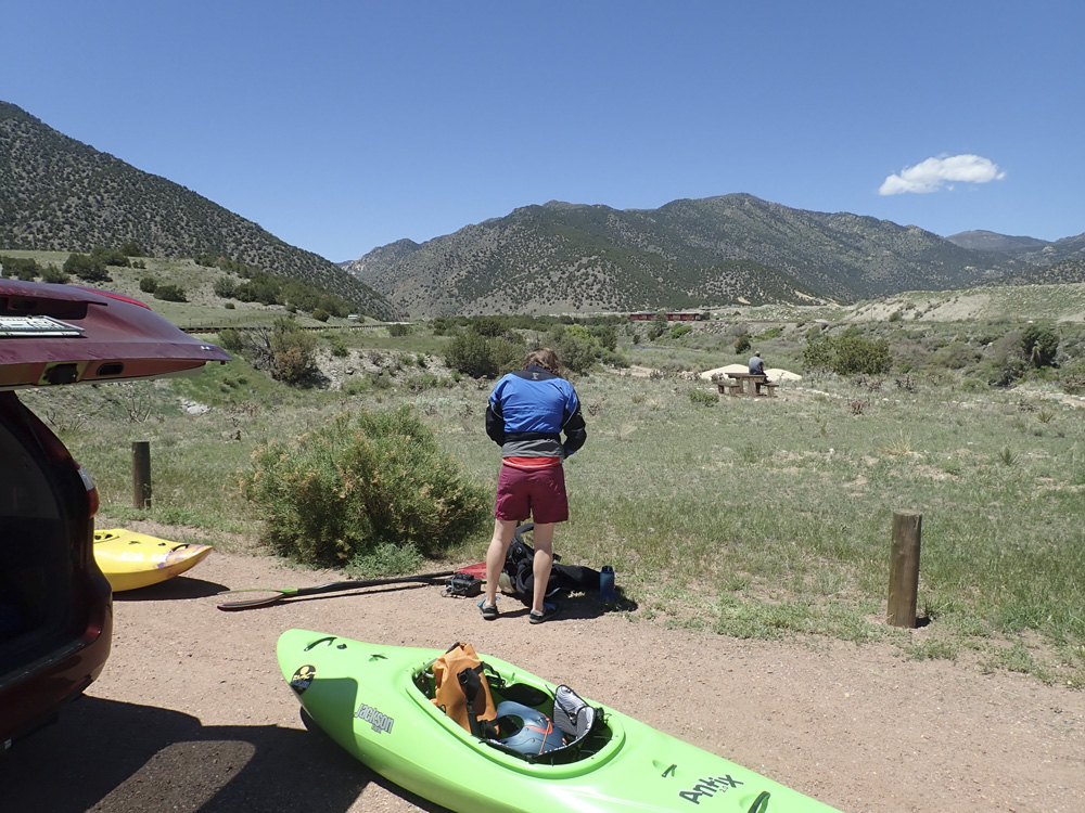 Take-out: It is right in Canon City, put Centennial Park into your map. Or turn south on 4th avenue off of US-50 and cross the river and turn right into the park.