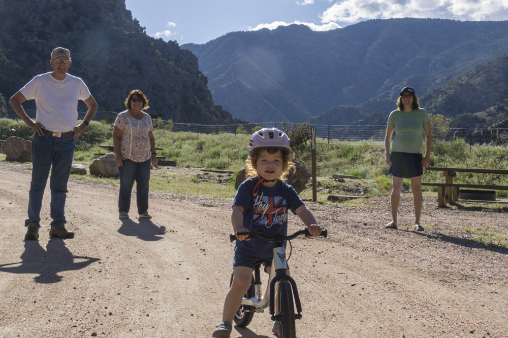 We met up with my parents on the first day in Canon City, at the whitewater park (AKA Centennial Park) in late morning. We played with Aster at the playground for an hour before then driving up to have my mom drop us off.