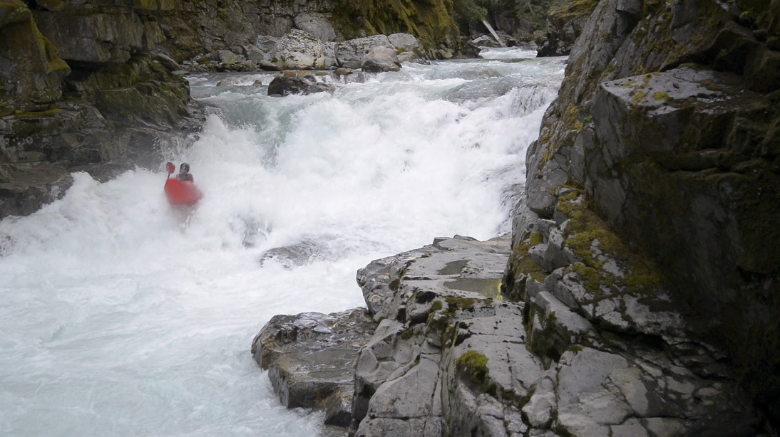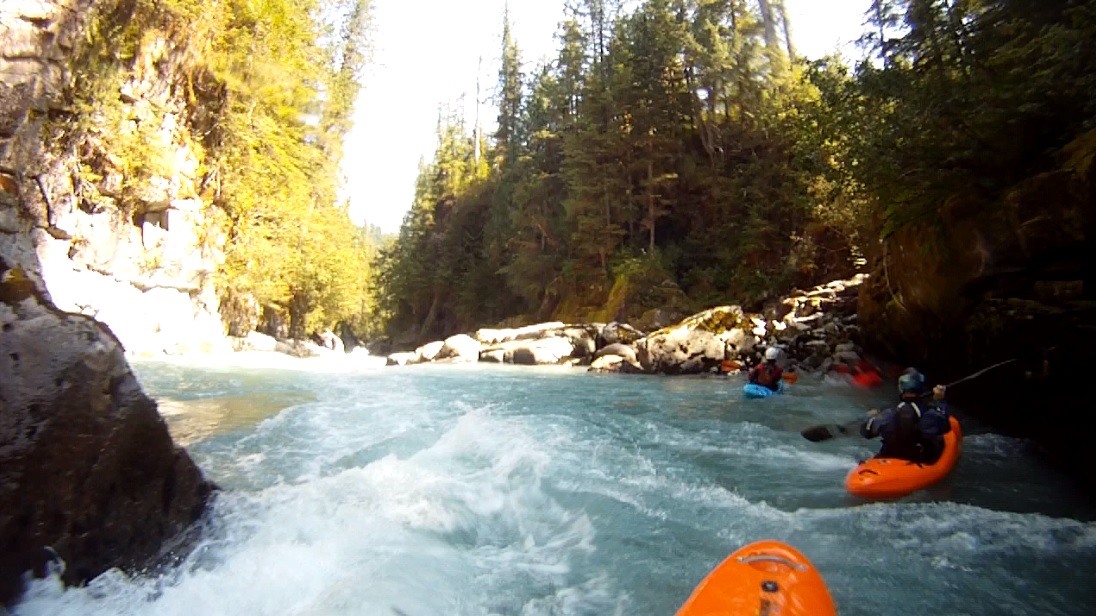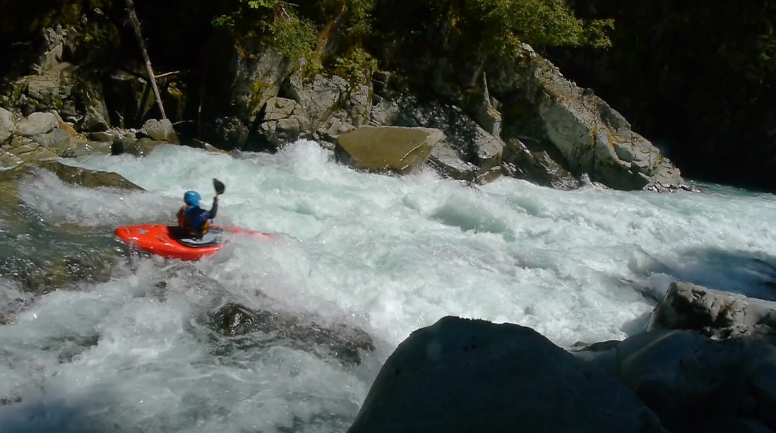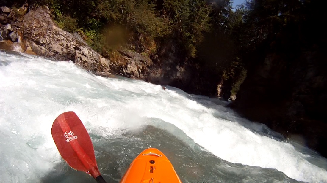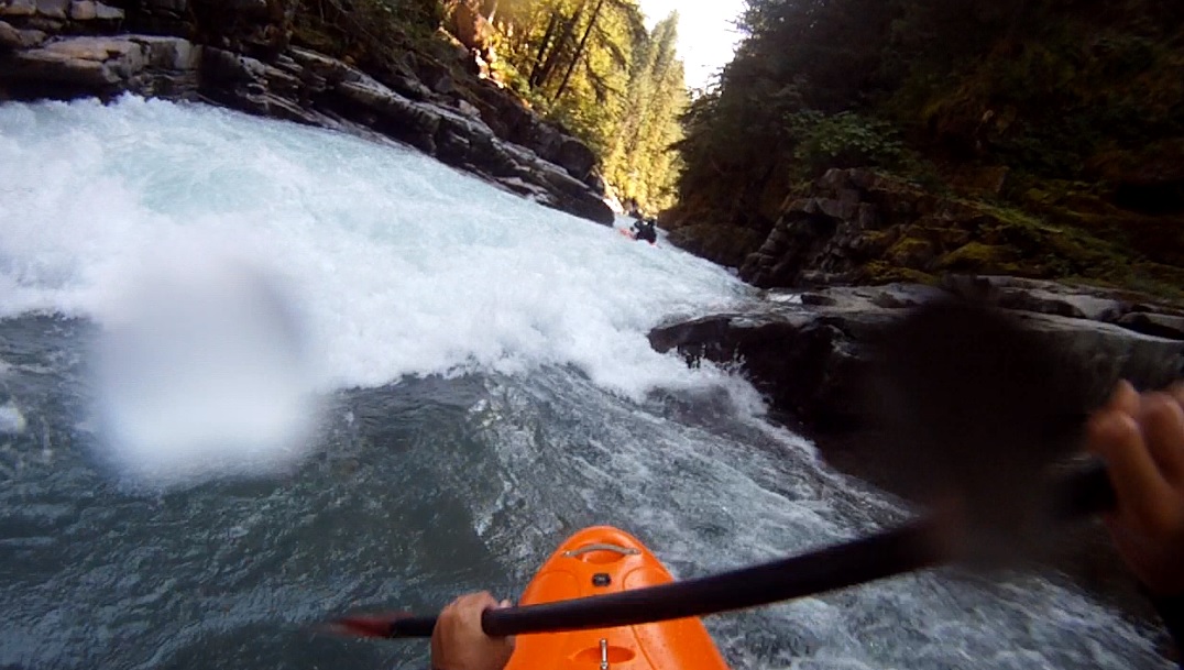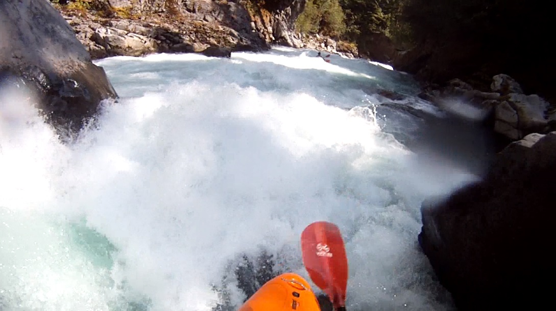 Part One (IV to IV+). The first part of a two part rapid is scoutable on the right from the lip. Just boof the right side of the center rock and run down the exit. Eddy out right before the next ledge.