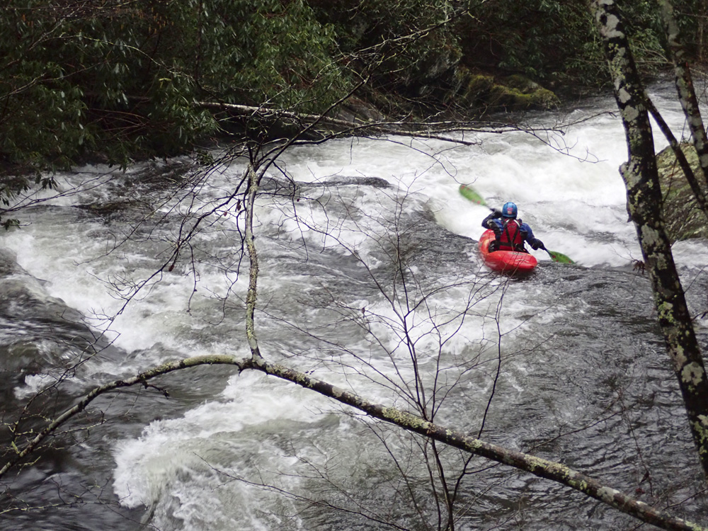 The run starts off with one quick rapid that should be scouted if you don't have someone that knows it. We were able to enter in a small channel on the right and then scout. Below here, the river is class II for several miles, with high stress over grown channels where a log jam could spell disaster.