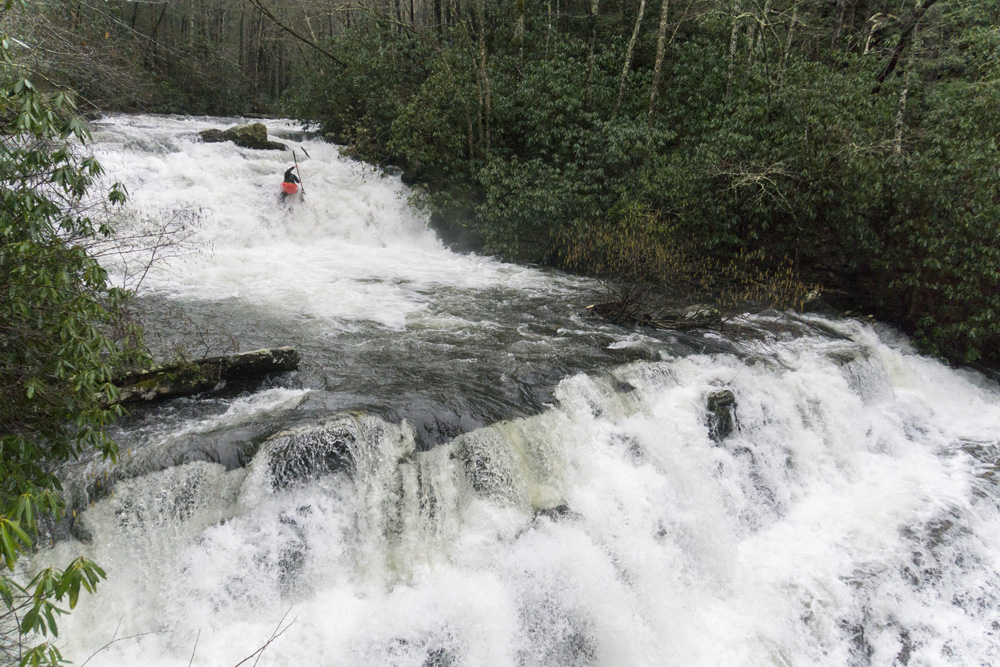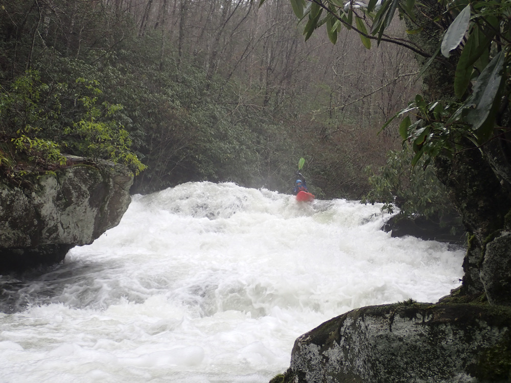Take-out: From the town of Tellico Plains, take TN-165 4.5 miles east up river. When the river tries to bend away from the river, turn right on River Rd to continue traveling upriver on the smaller two lane road. Follow this 6.2 miles and park just past the bridge that crosses the river. It is impossible to miss as the Falls will be misting the road. The trail to the top of the falls is just 100 ft further up the road. It is worth going up to check flow and to check the eddy situation above the falls, as you don't want to accidentally miss that last eddy!