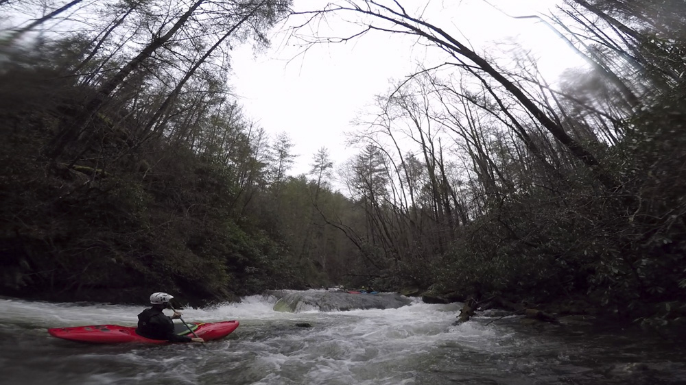 Exit Boof (III). Just downstream is a small ledge that can be boofed on either side of the midstream rock that forms the ledge.