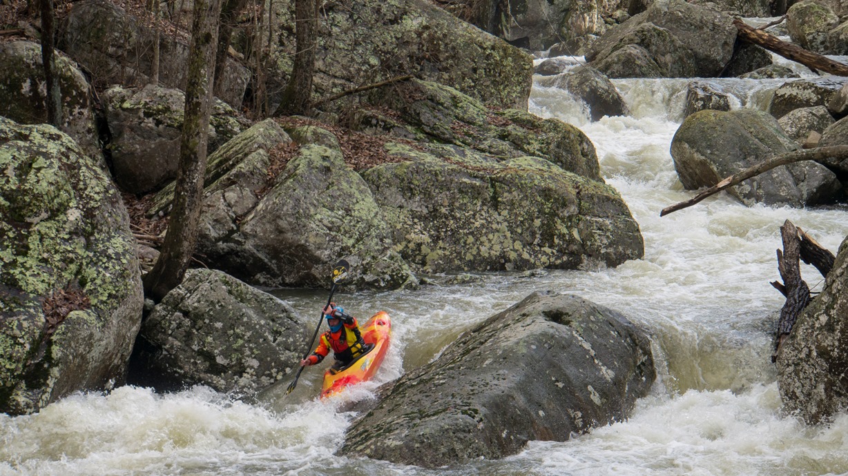 The run starts off with some mellow slides that gradually steepen and progress in difficulty until you get to Fishbowl. From this point on, the run is game-on. The next half mile is full of large bedrock drops that pack some mean holes at higher flows. As big and intimidating as this section looks, it is significantly easier than the section below, the mile of creek as the canyon walls retract, and you face all the boulders that have fallen into the river over the past million years. This section is one continuous boulder garden, non-stop moves to keep you on your toes, and holes that are eager to take you for a ride requiring precise attacks and boof strokes. Your first time down, you will be gripped... playing follow the leader, catching eddies left and right in the middle of large rapids, only to peel back out chasing your leads tail, trying to keep within eyesight to ensure you know where to go. But despite the relentless pace of the river, as you paddle through the last rapid, Omega, the canyon relents and you are finally able to catch your breath, you will be left exhilarated with the buzz of adrenaline still pulsing through your heart.