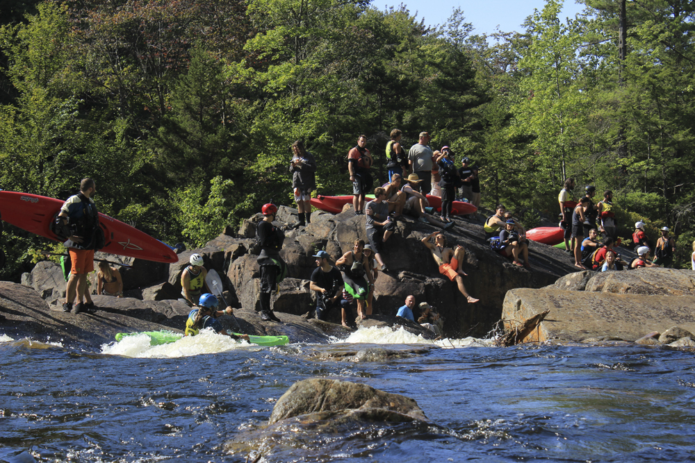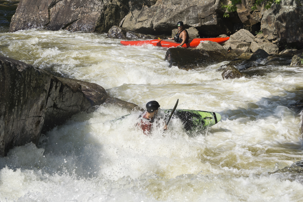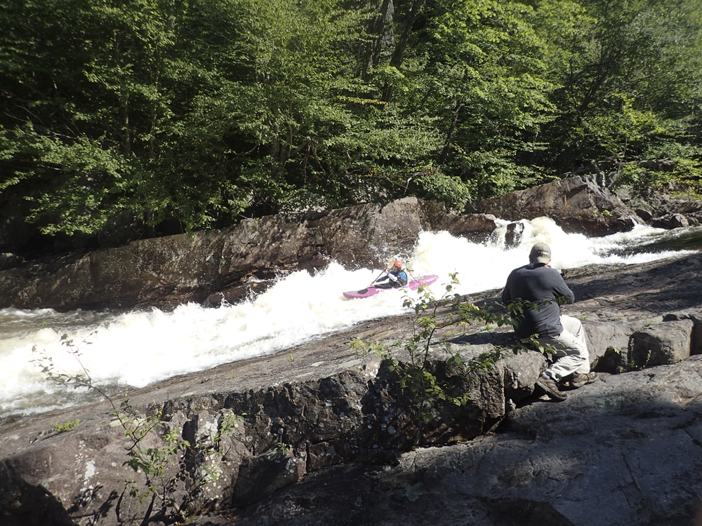 Big Hole (IV+). We scouted at low water and this looked like nothing. Was surprising to drop over without scouting it with water to find a big hole. We ran center driving straight perhaps a smidge to the left to punch the hole. To the right is a recirculating eddy. Downstream, the water flushes out and goes to rocks on the right downstream. Those ruin race times. If you are upright they are no problem. In all honesty, this is the hardest rapid of the run.