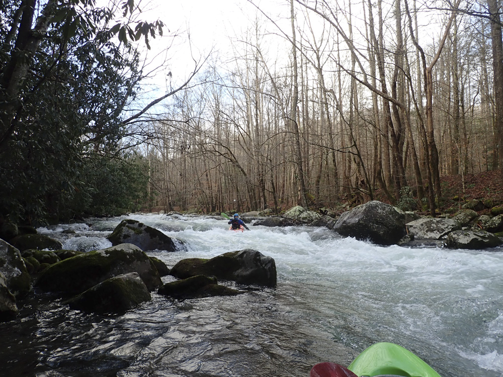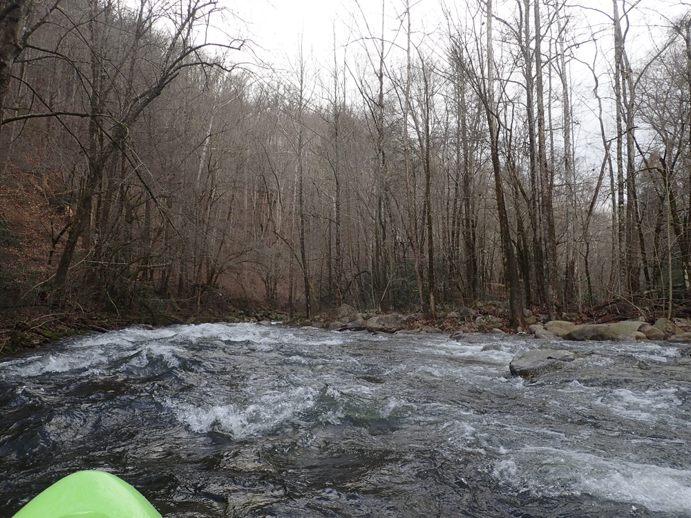 This run is a great intro to typical smokies whitewater. I thought it was similar in difficulty to the rapids on the Little, below the sinks and above the elbow. But, perhaps not quite as big of climaxes but also more continuous. I think it is very complimentary for anyone capable of the Little, also be capable here. Swims here though could result in some bruises, so get a solid roll before venturing out here.