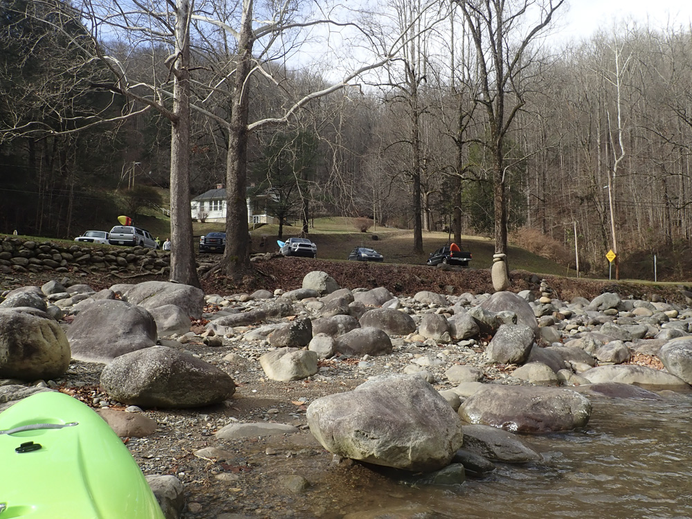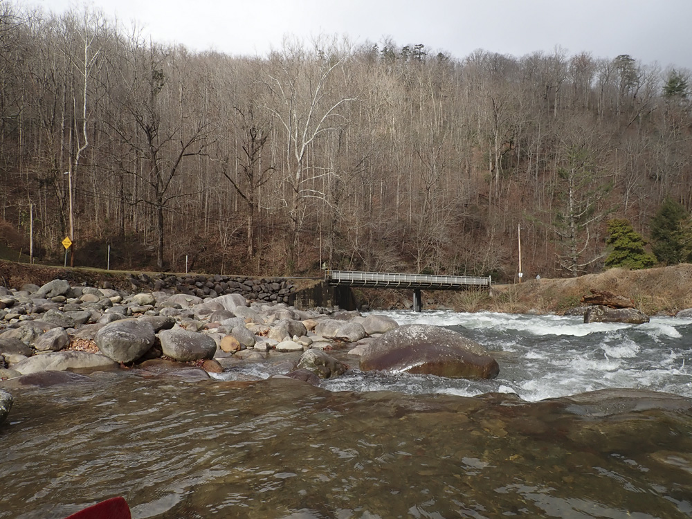 Take-out: Take-out: From Knoxville take Highway 40 towards Asheville. Take the last exit before crossing into North Carolina, exit 451 toward Waterville Rd. Turn right onto Waterville and stay left to follow it up the Pigeon River. At the confluence with Big Creek there is a large rafting access. Most people will continue up Waterville Rd though, crossing the creek twice in 0.2 miles and parking just on the far side of the second bridge.