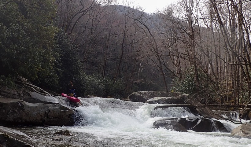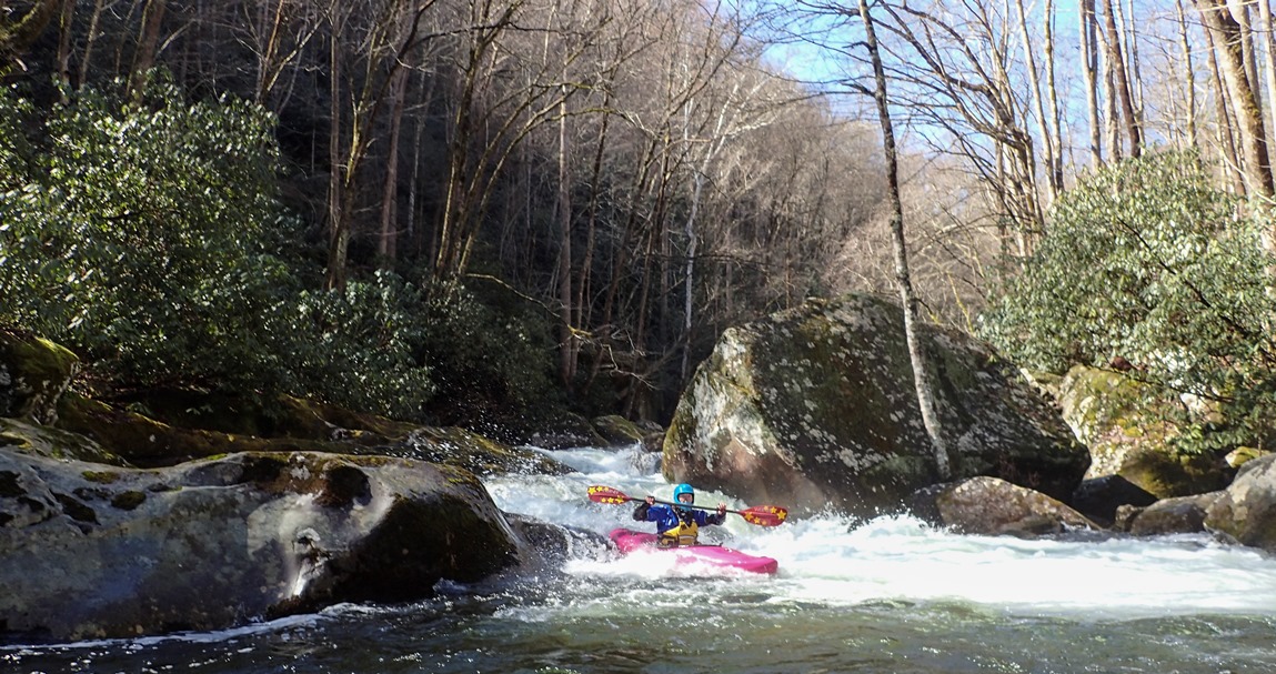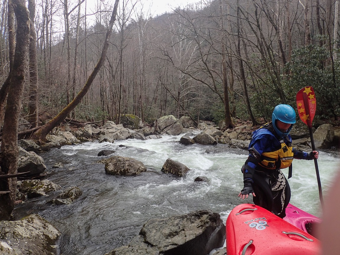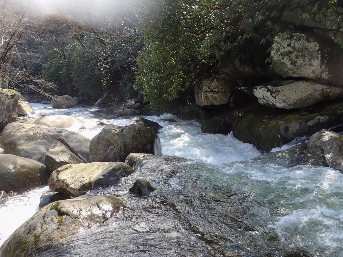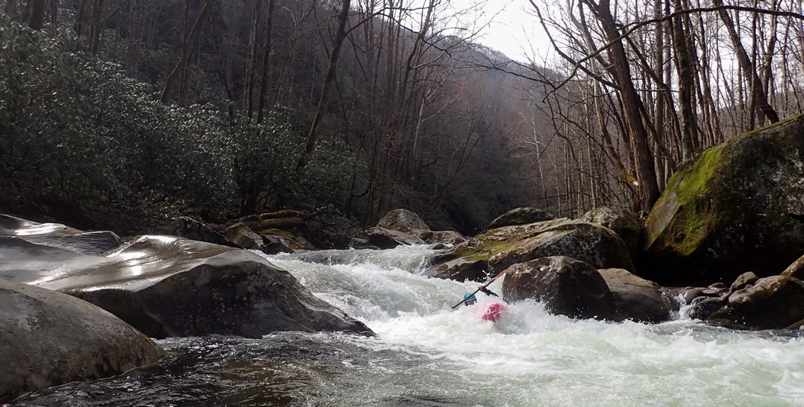 Most folks will put in at the bridge, 2.6 creek miles and 2.3 trail miles upriver from the parking at the NPS Campground. Some go a few hundred yards further to get Superman which is apparently a great boof followed by a series of ledges. Others will choose to take the class V aspects of the run out of it completely and put-in below Action Alley. Either way, stay on your toes, scout for wood and rock hazards often if you are unfamiliar with the lines. Additionally, I would suggest scouting Action Alley on your hike up the trail, as well as taking special note of the eddies above Monster. Both these sections are trailside and should demand a little extra attention. The rest of the run is steep boulder gardens with an occasional hole to punch through. There are literally no pools except the one below Midnight Hole. The run starts off with some smaller rapids amongst smaller rocks, but in my mind those are the most dangerous as pins and broaches can most easily happen here. As you approach Monster, the run enters its crux section. Monster is usually portaged and then you run one big rapid to the lip of Midnight hole. Below the action continues straight up to Action Alley, a sequence of big, tight, and continuous drops which define "fun" in the Smokies. Below, the river gets easier before become extremely shallow and congested leading up to take-out.