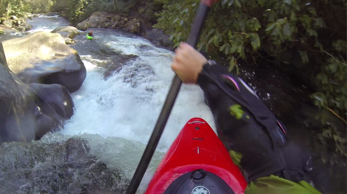 End of Action Alley (IV+). "That's the end of Action Alley, back to boogie" I was told. After one in-between rapid we entered two sweet rapids which I don't recall the order of. One ended in a super sweet boof over a large-ish hole and the other involved a rock smear to the right of a good size hole.