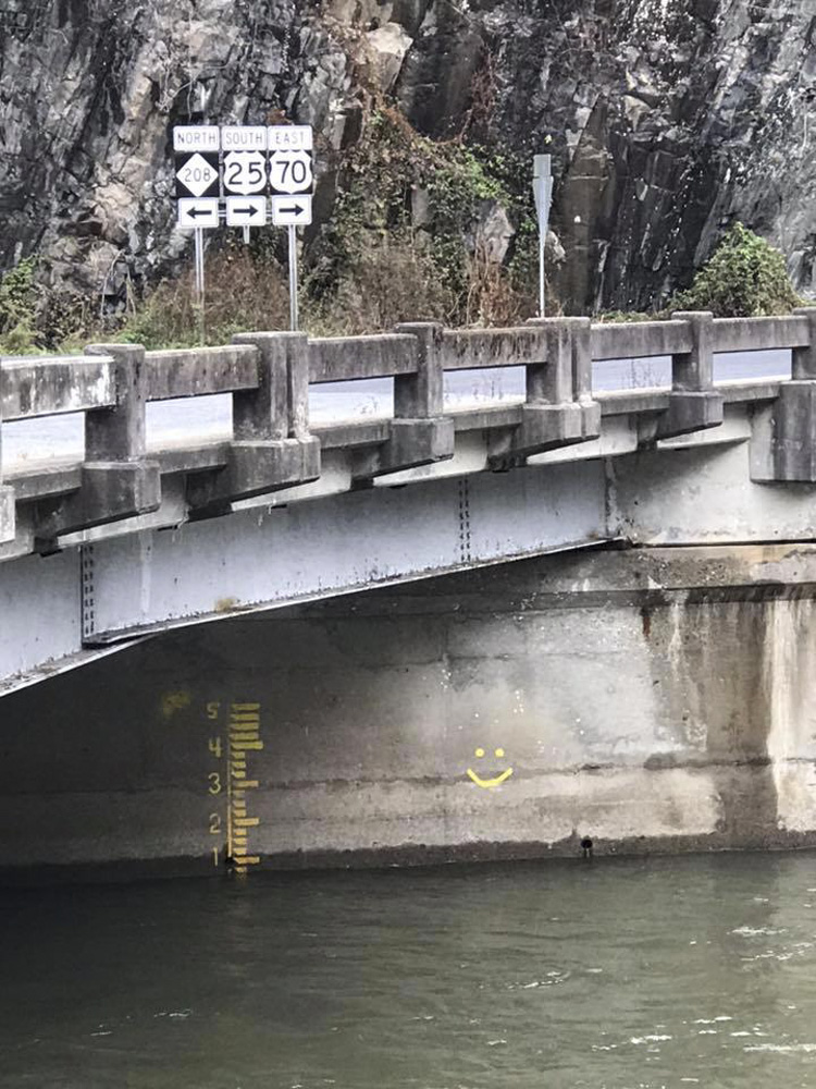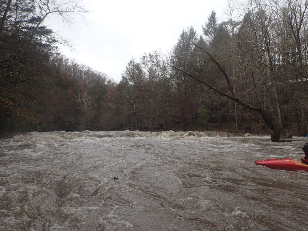 - Confluence with the French Broad. If you have high flow, you can expect 7,000-10,000 cfs to greet you here.