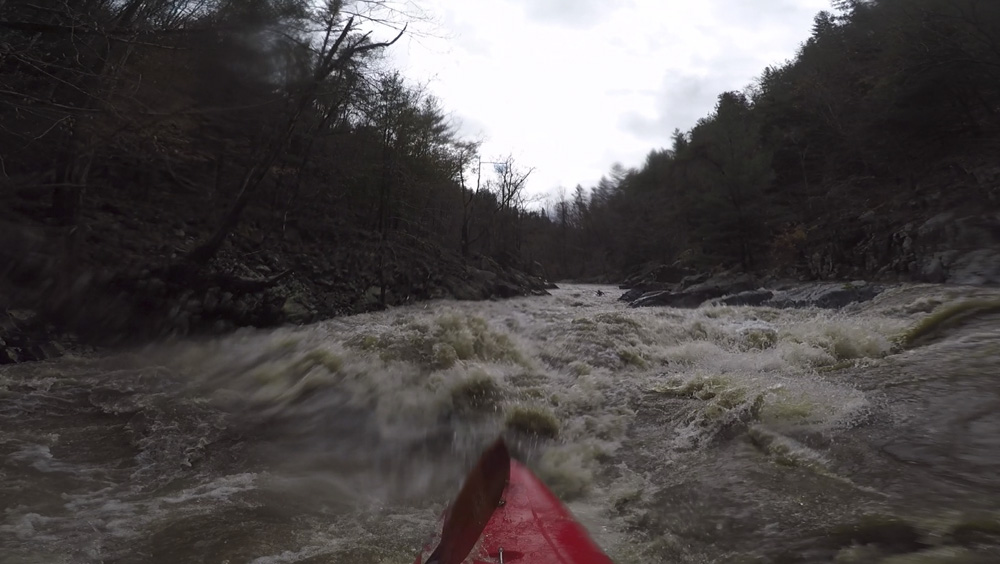 - Pinball (II to III-). At low flow apparently people run left of center through this ledge. At high flow, the river was a huge ledge hole. Diane boofed far left which was successful but I wouldn't recommend everyone doing it, as if you found yourself in the hole it would be hard to exit and hard to reach with a rope. I went far right down a mellow ramp.